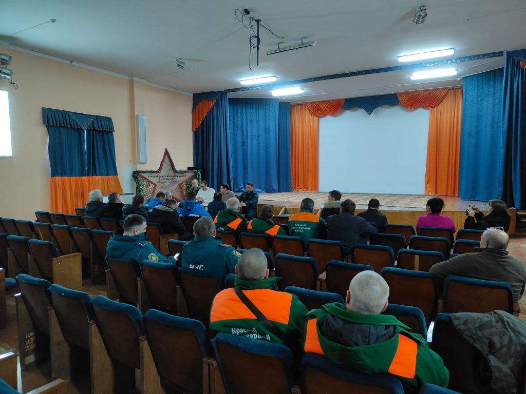 Учебная программа развернулась в здании дома культуры. Краевой лесопожарный центр представил серию профильных докладов: