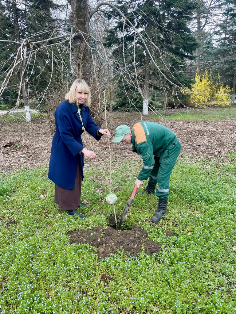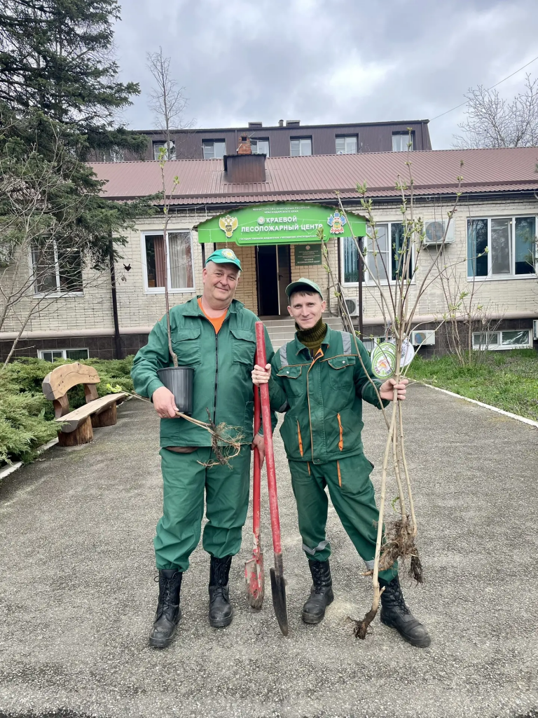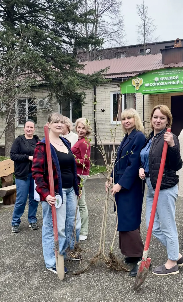 В этот день коллектив ГБУ КК КЛЦ объединился, чтобы посадить десять молодых деревьев — сирени, сумаха и черёмухи.